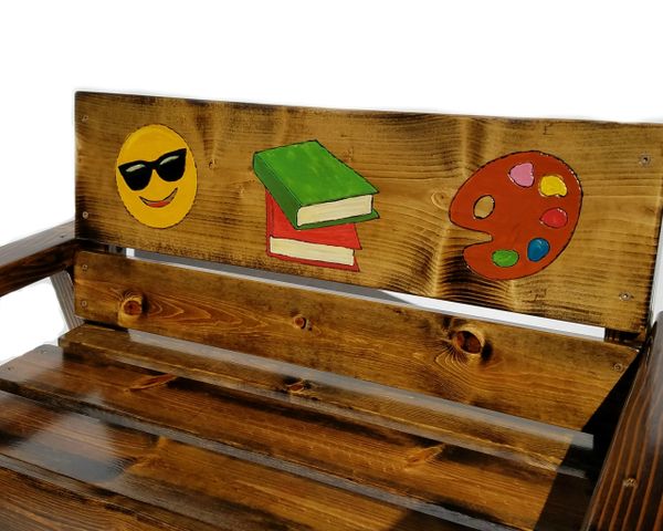 | Kids Emoji Message Wood Bench Painted & Engraved Furniture |